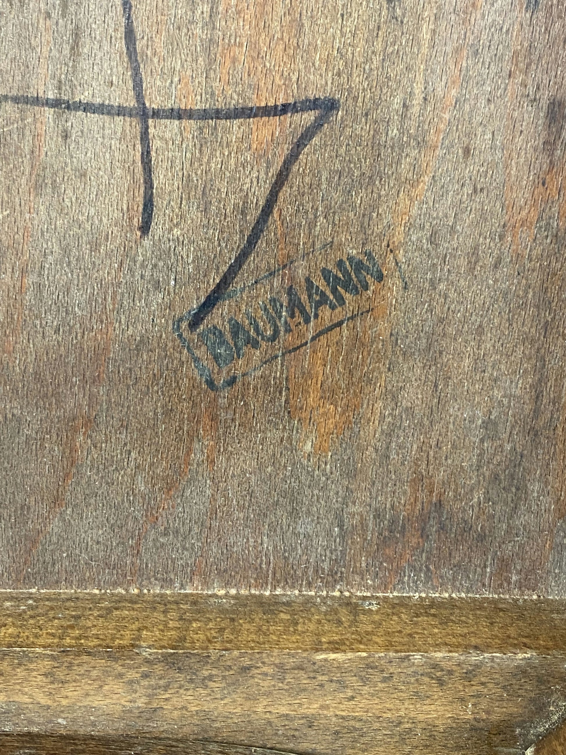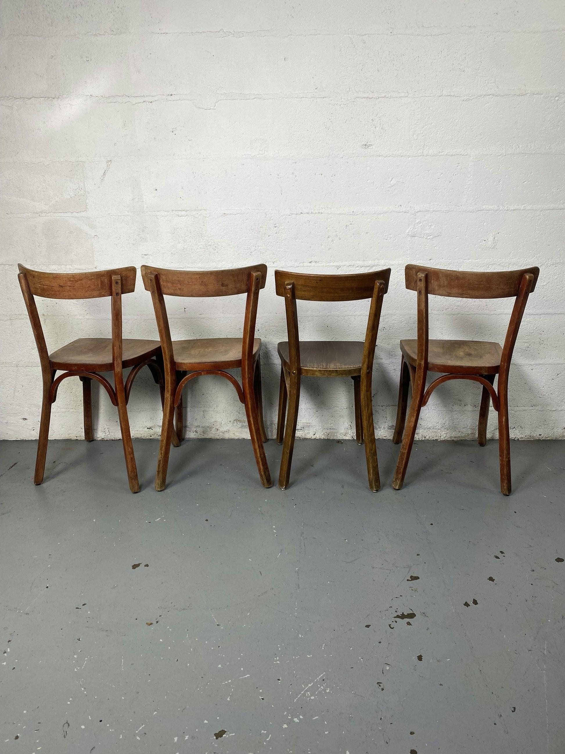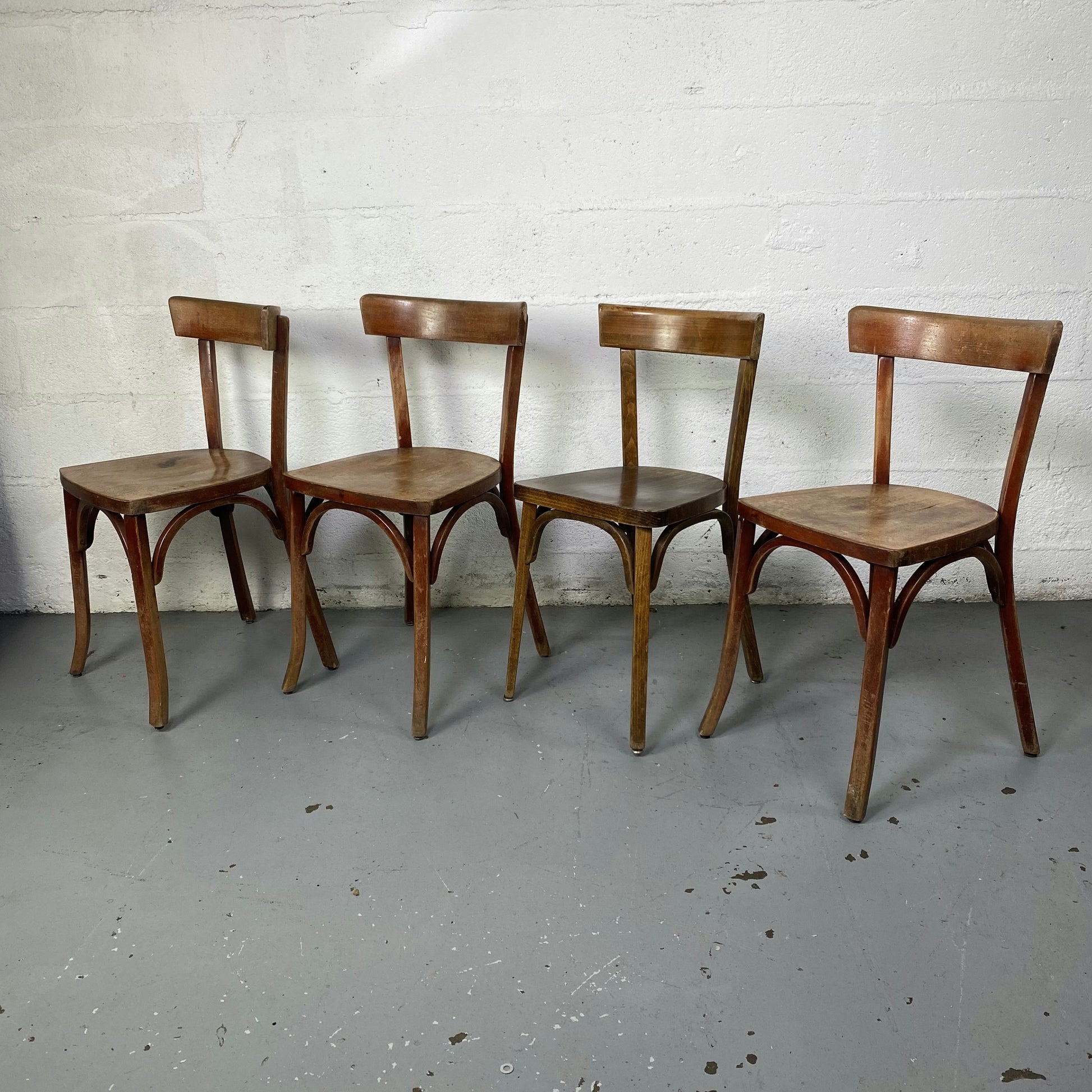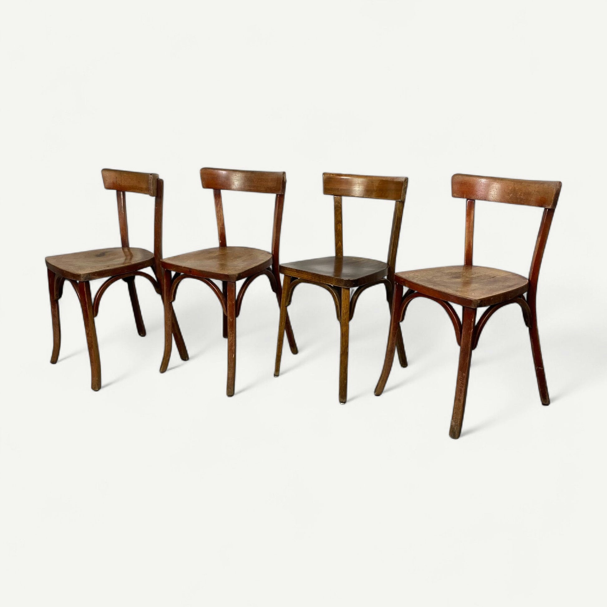 4 chaises bistrot Baumann, style vintage en bois et cannage, idéales pour une ambiance café parisien authentique.