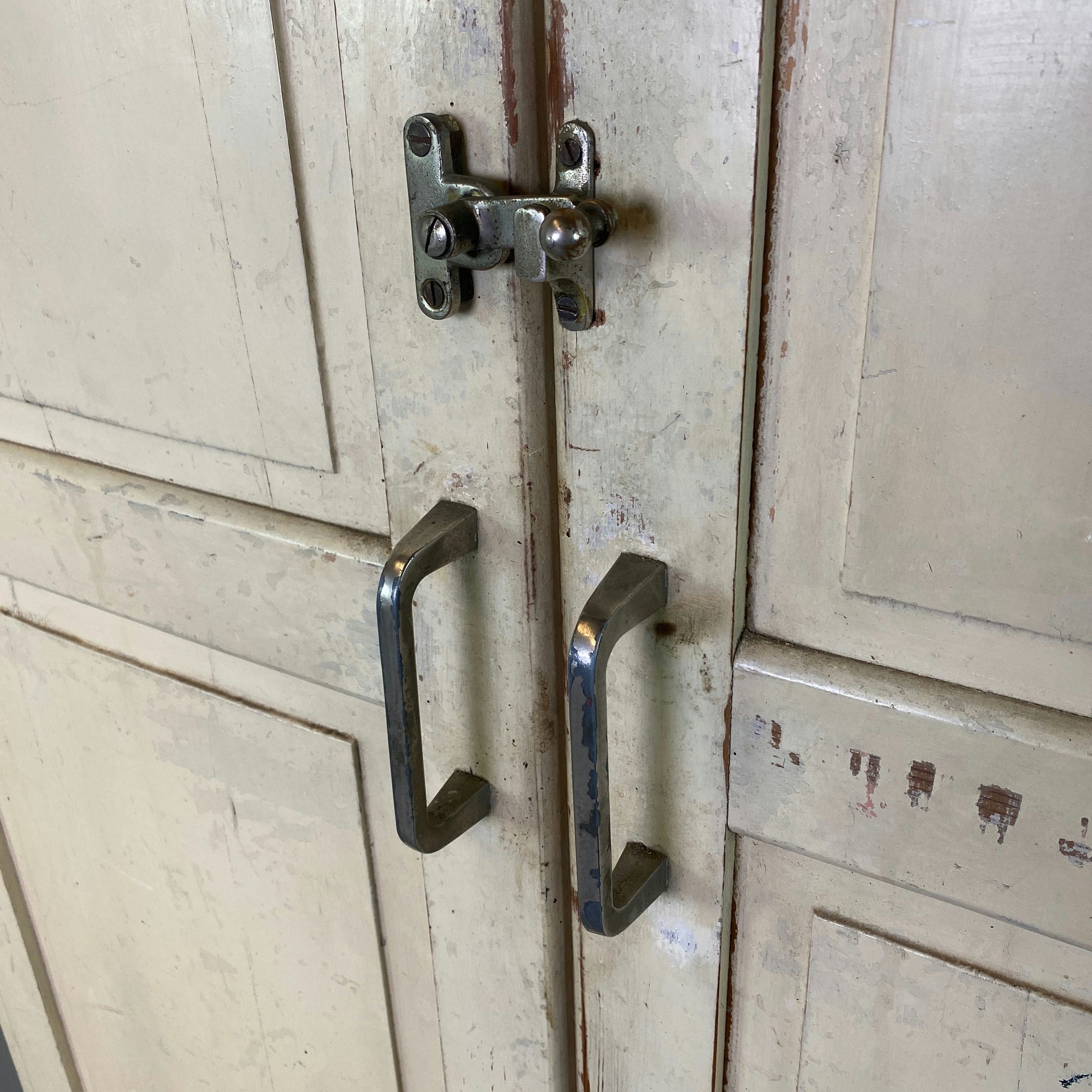 Armoire parisienne patinée sur 4 niveaux avec deux petits tiroirs intégrés de style vintage. Idéale pour un usage quotidien que ce soit en tant qu'armoire de cuisine de salle à manger ou de salon.