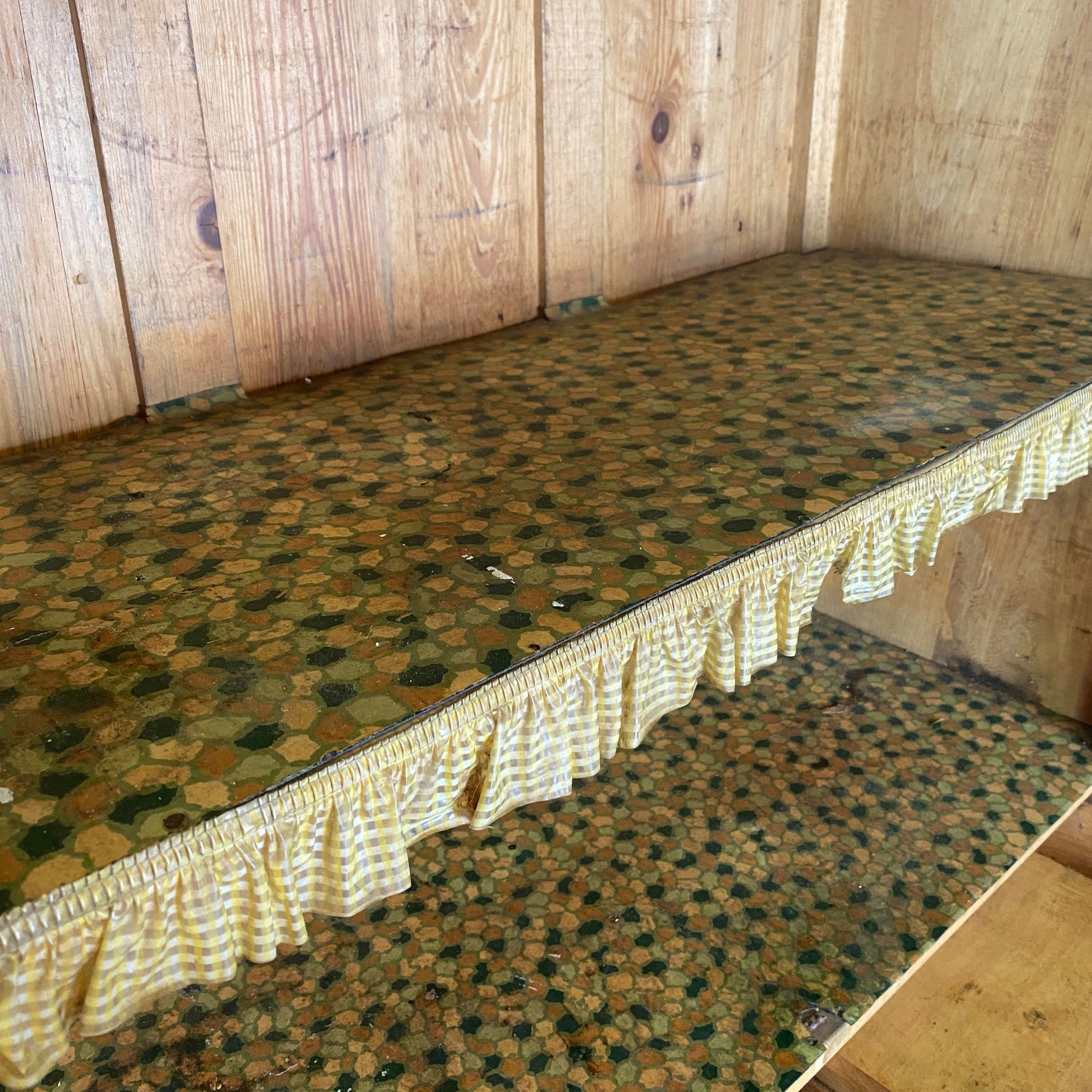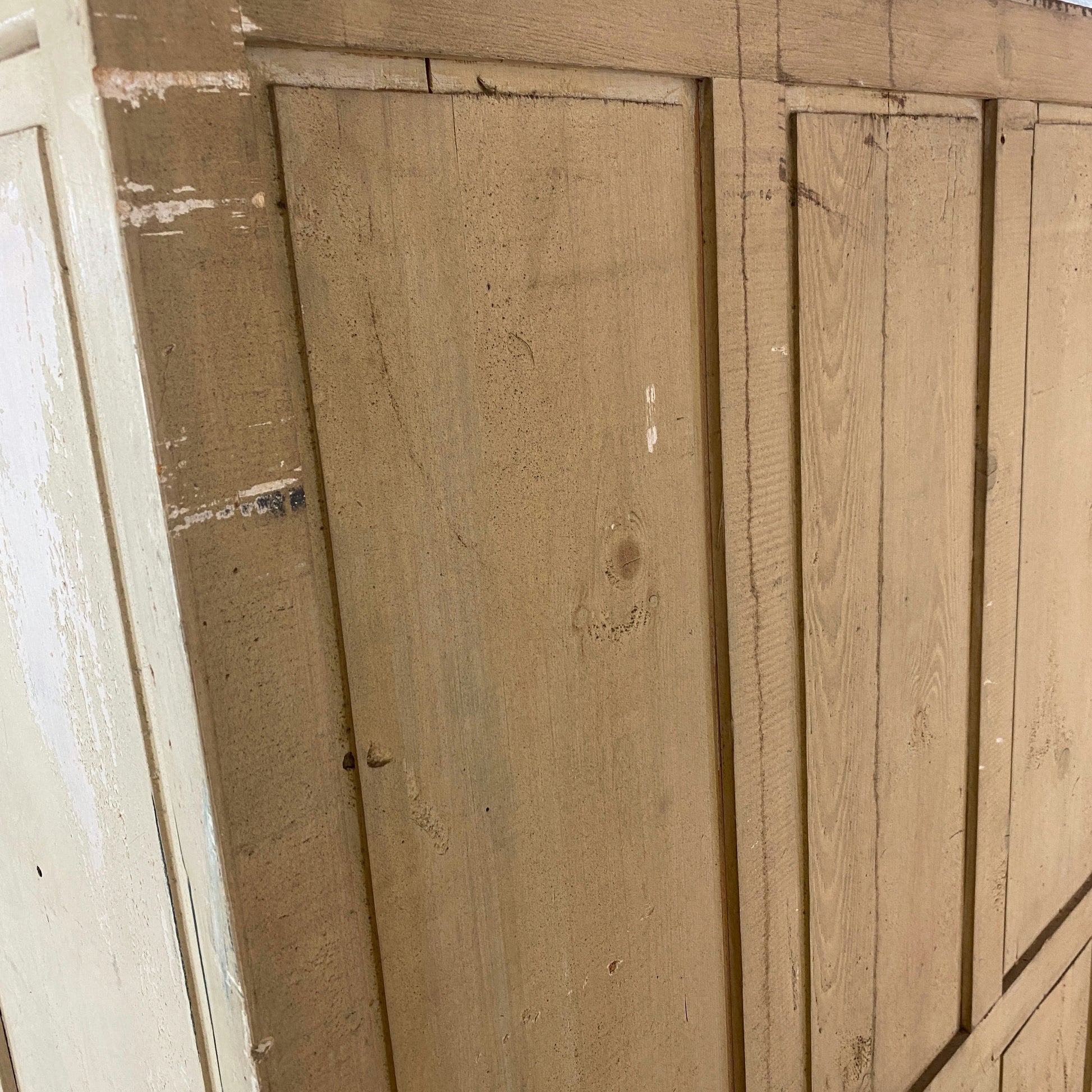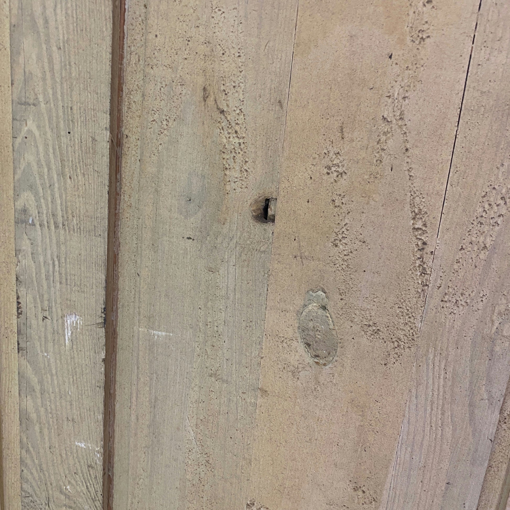 Cette armoire présente une finition vernie avec quelques traces d'usure, mais elle reste robuste et fonctionnelle. Elle apporte une touche authentique à votre intérieur.