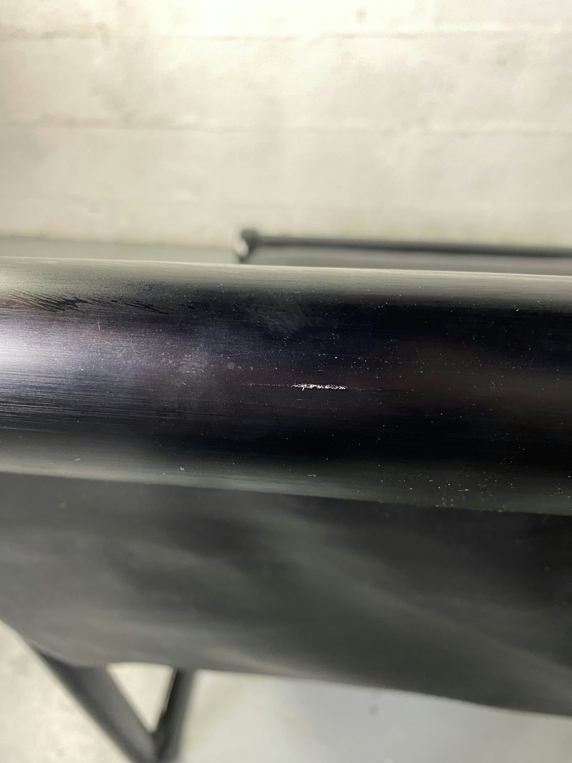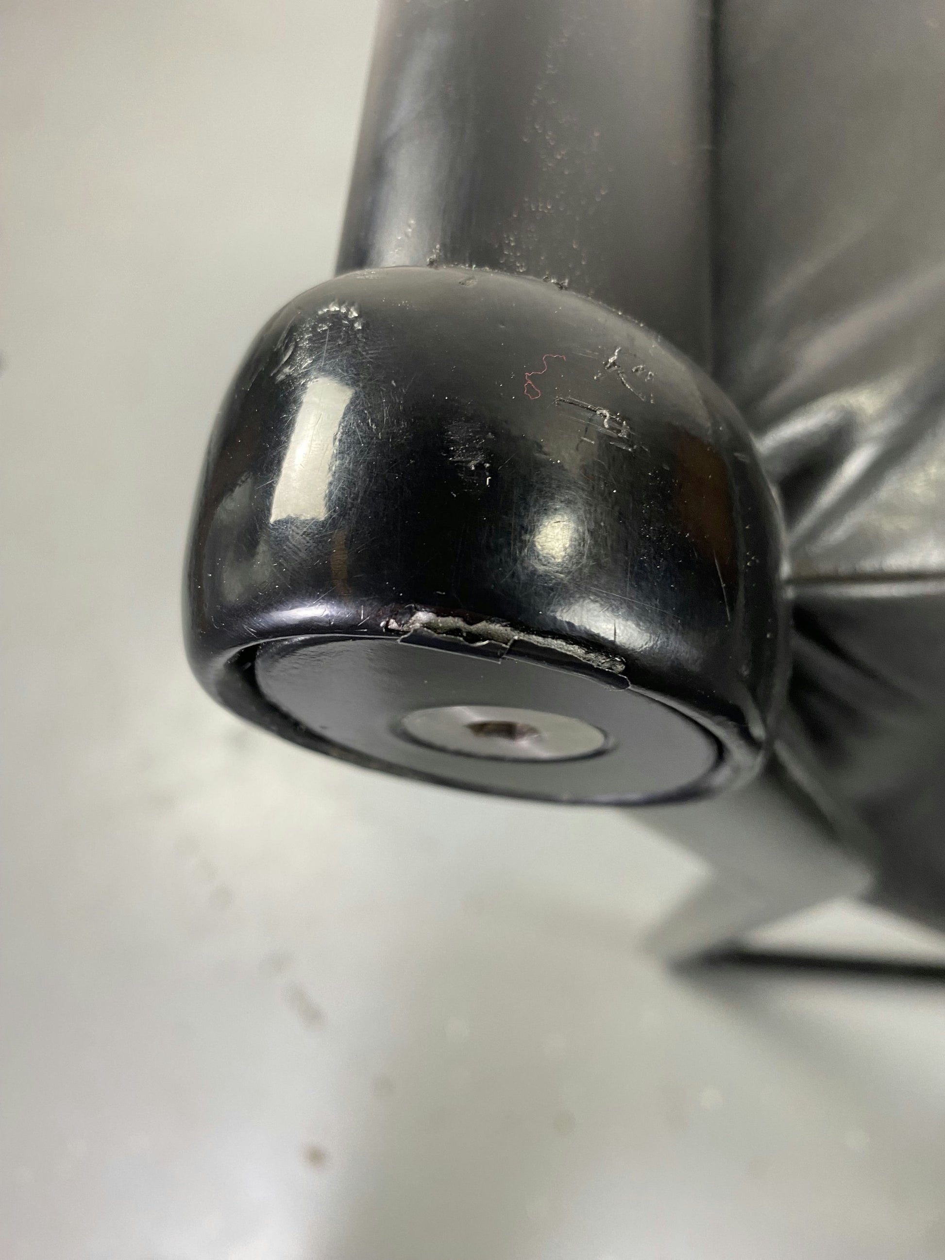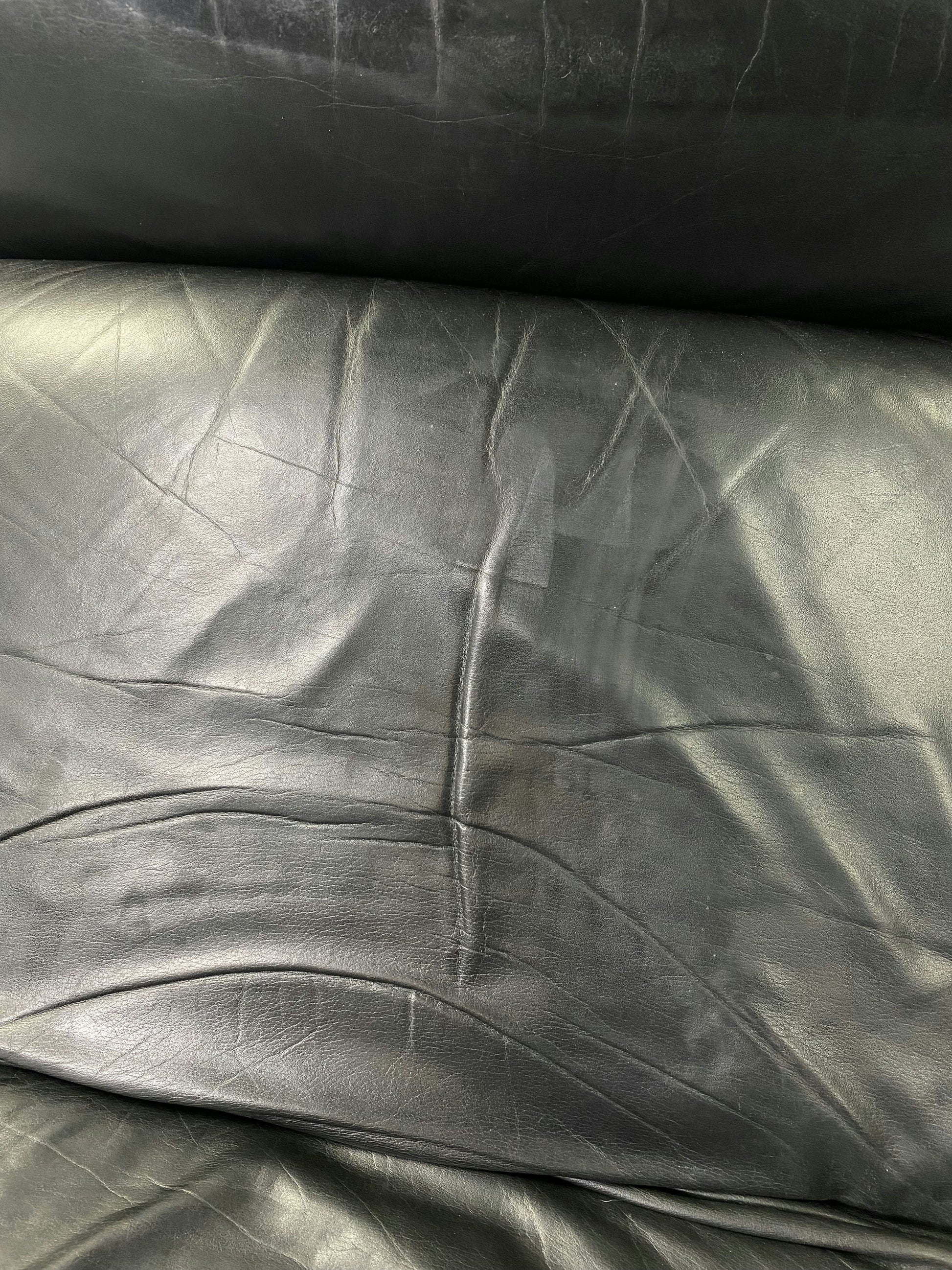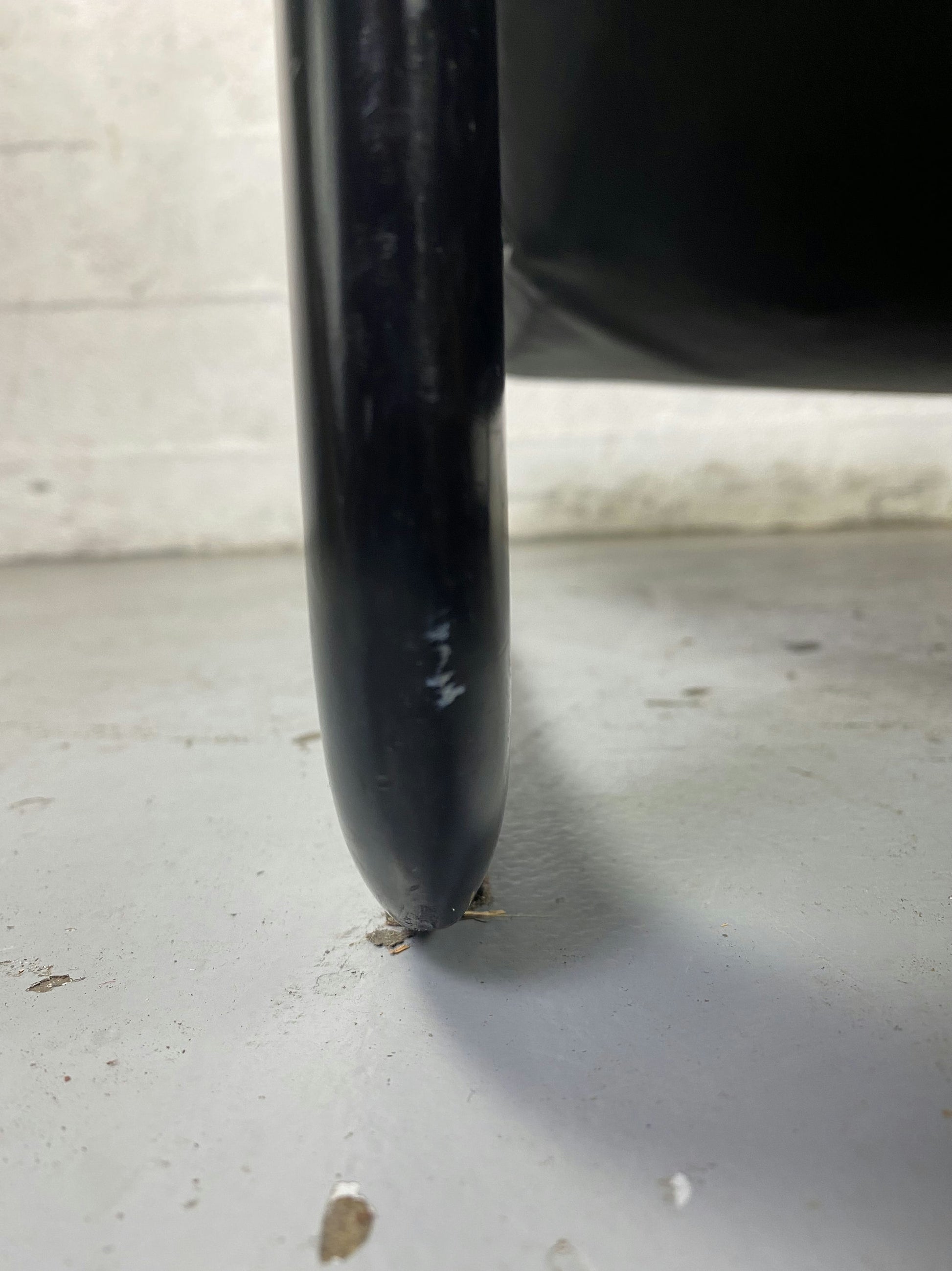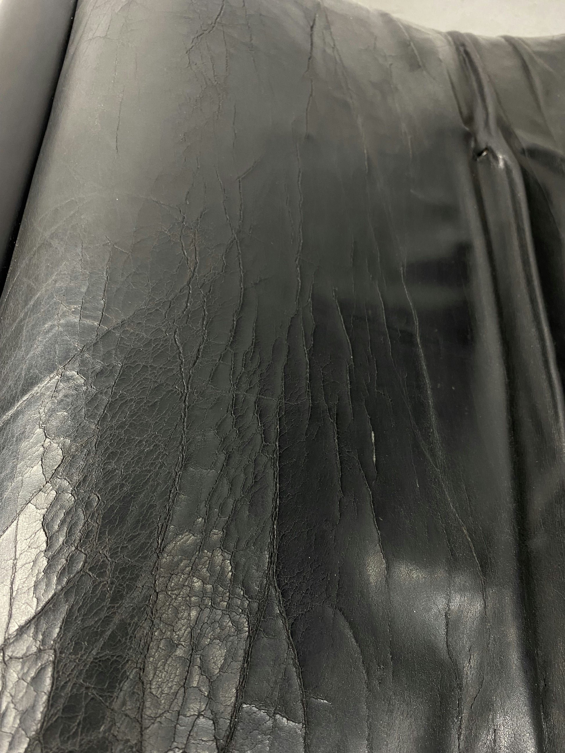Le cuir légèrement patiné par le temps ajoute un charme authentique, offrant une assise confortable et durable. Parfait pour ceux qui recherchent un fauteuil vintage en cuir noir pour ajouter une touche rétro à leur décoration intérieure.