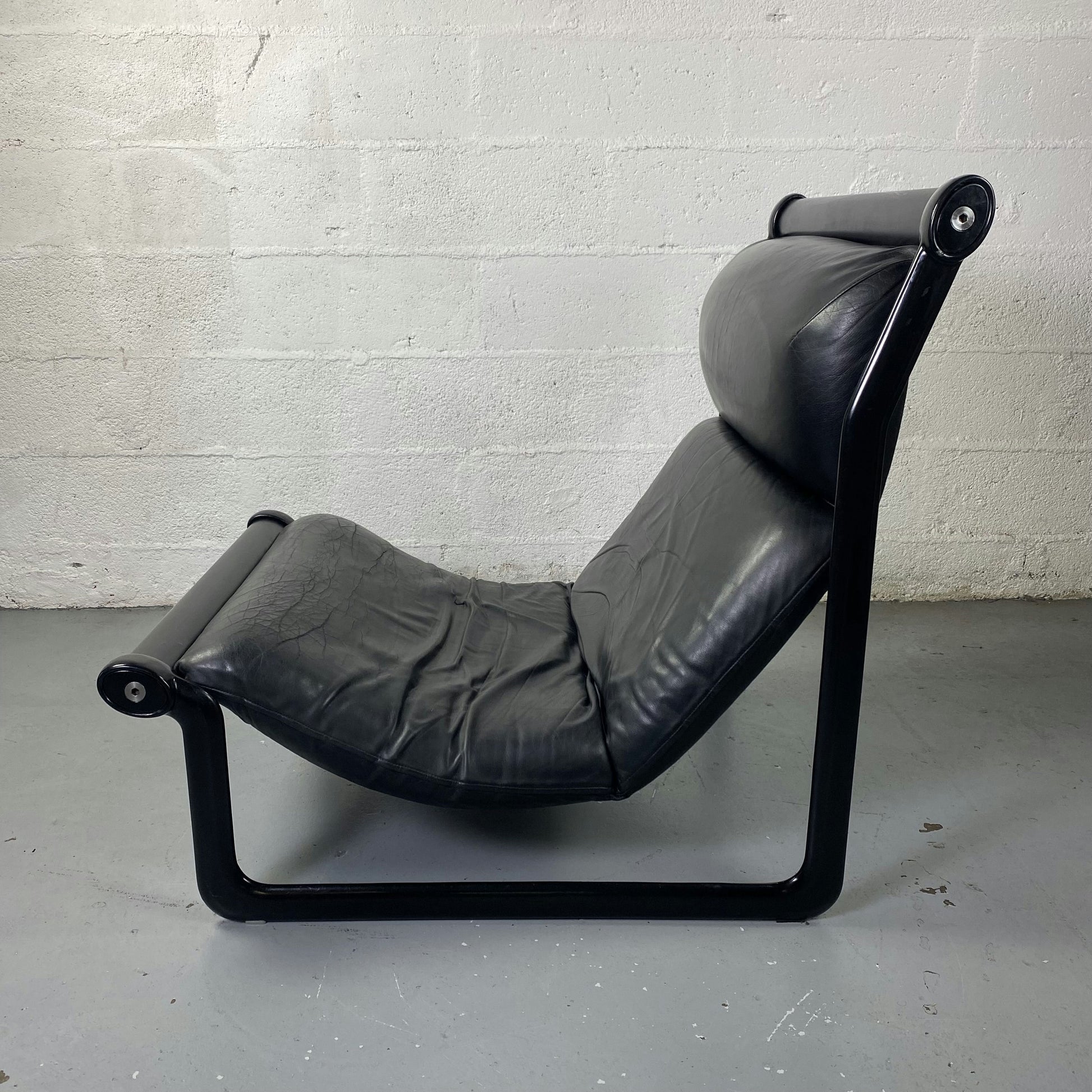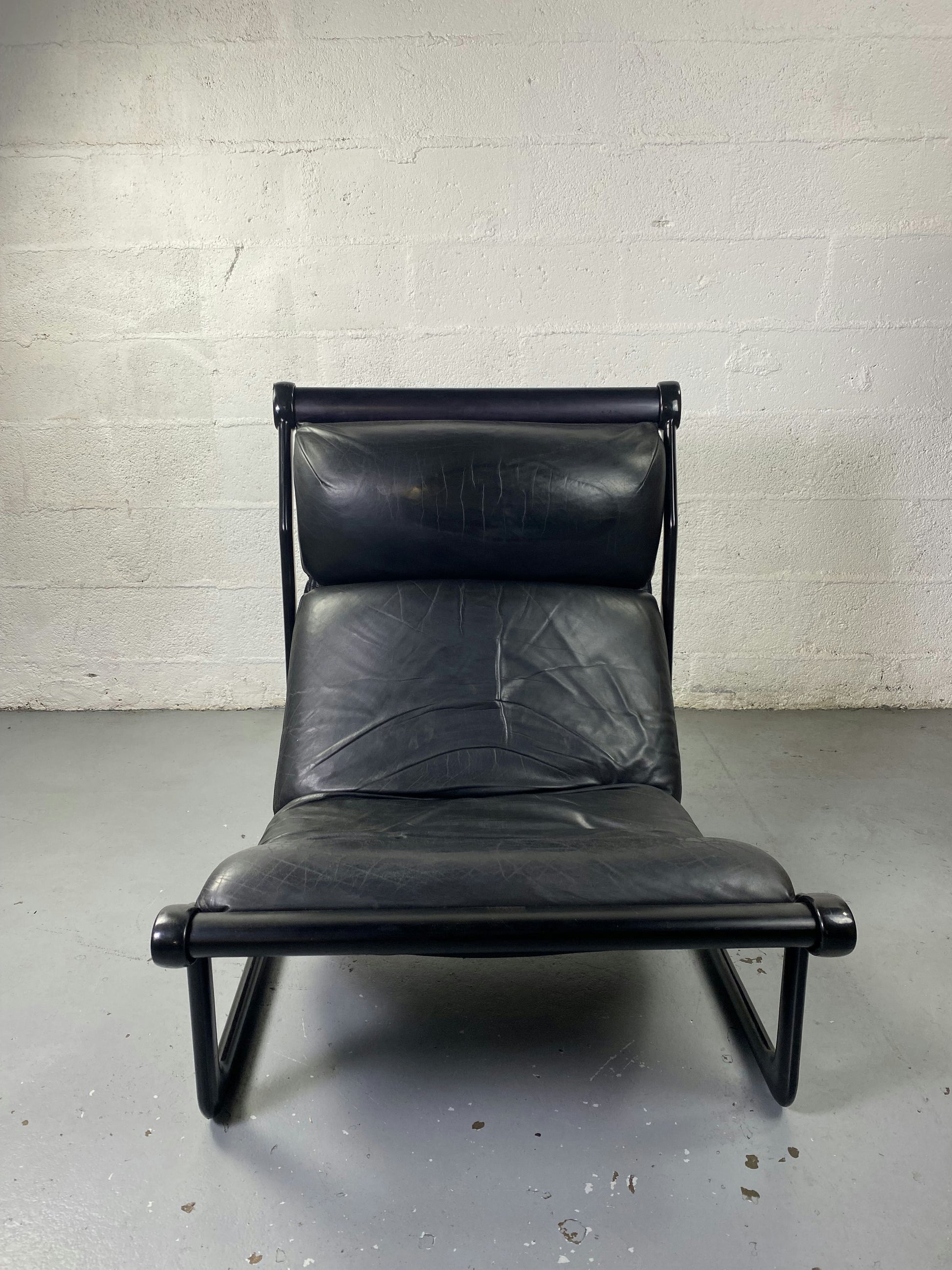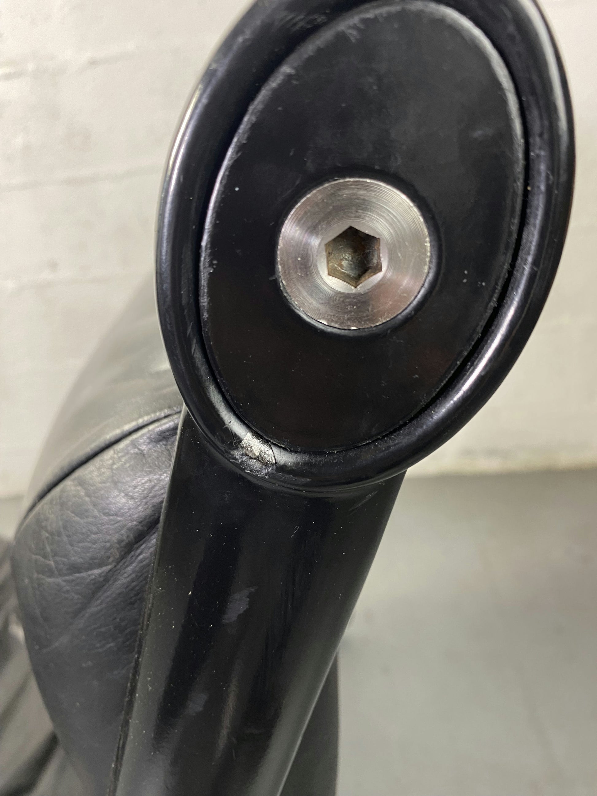 Fauteuil noir en cuir Knoll, icône du design moderne des années 60, idéal pour un coin lecture ou un espace de détente élégant.