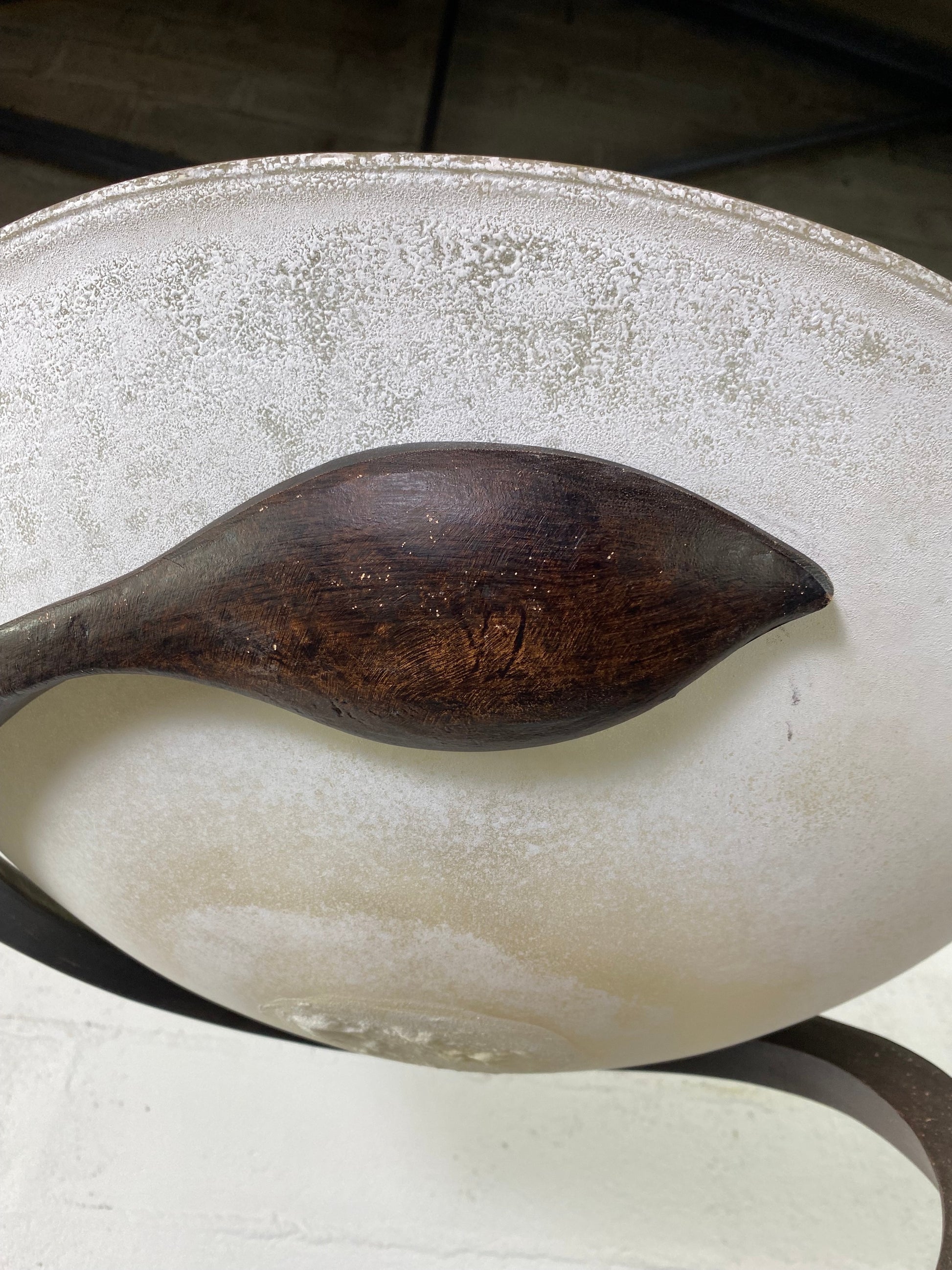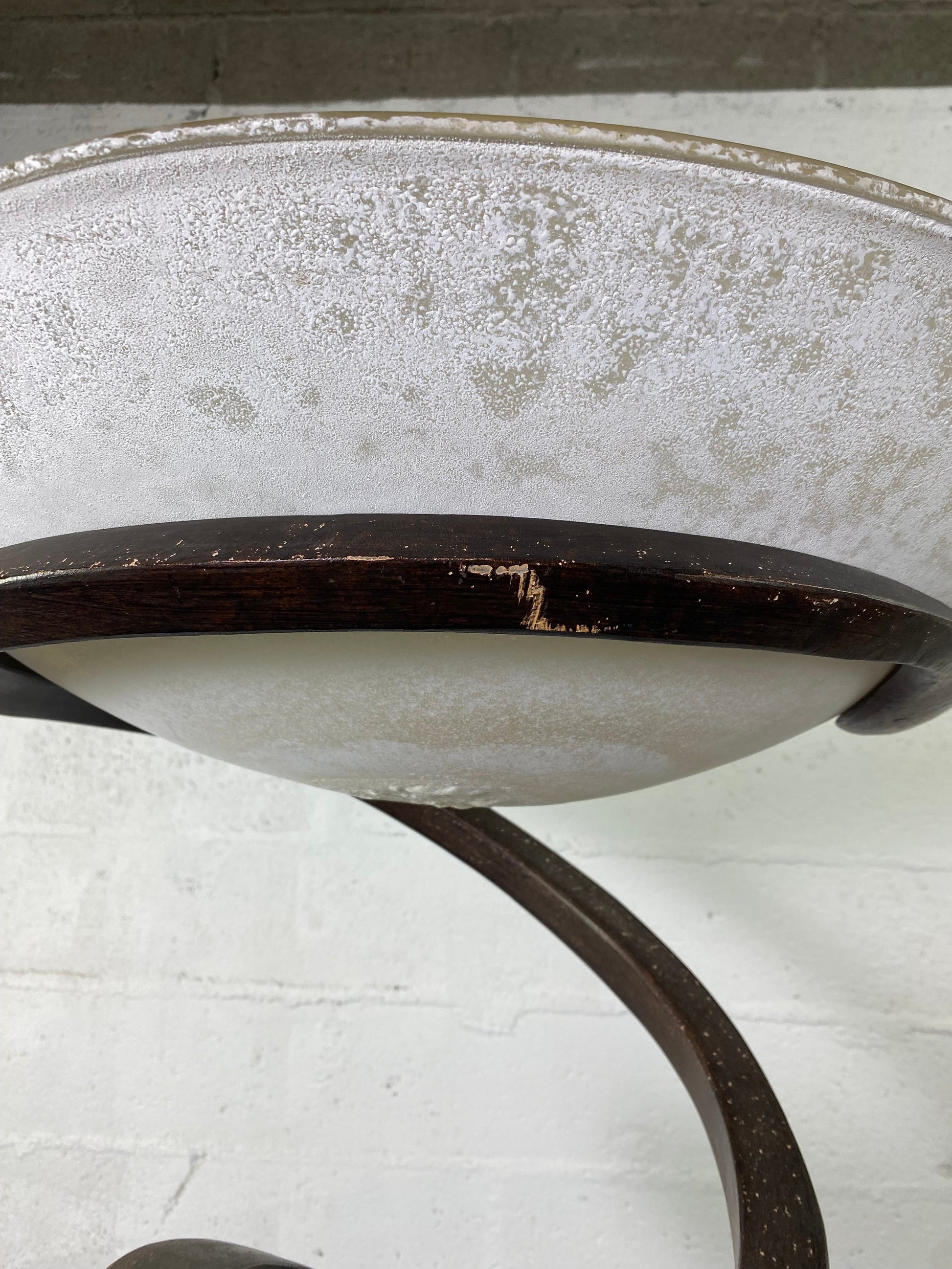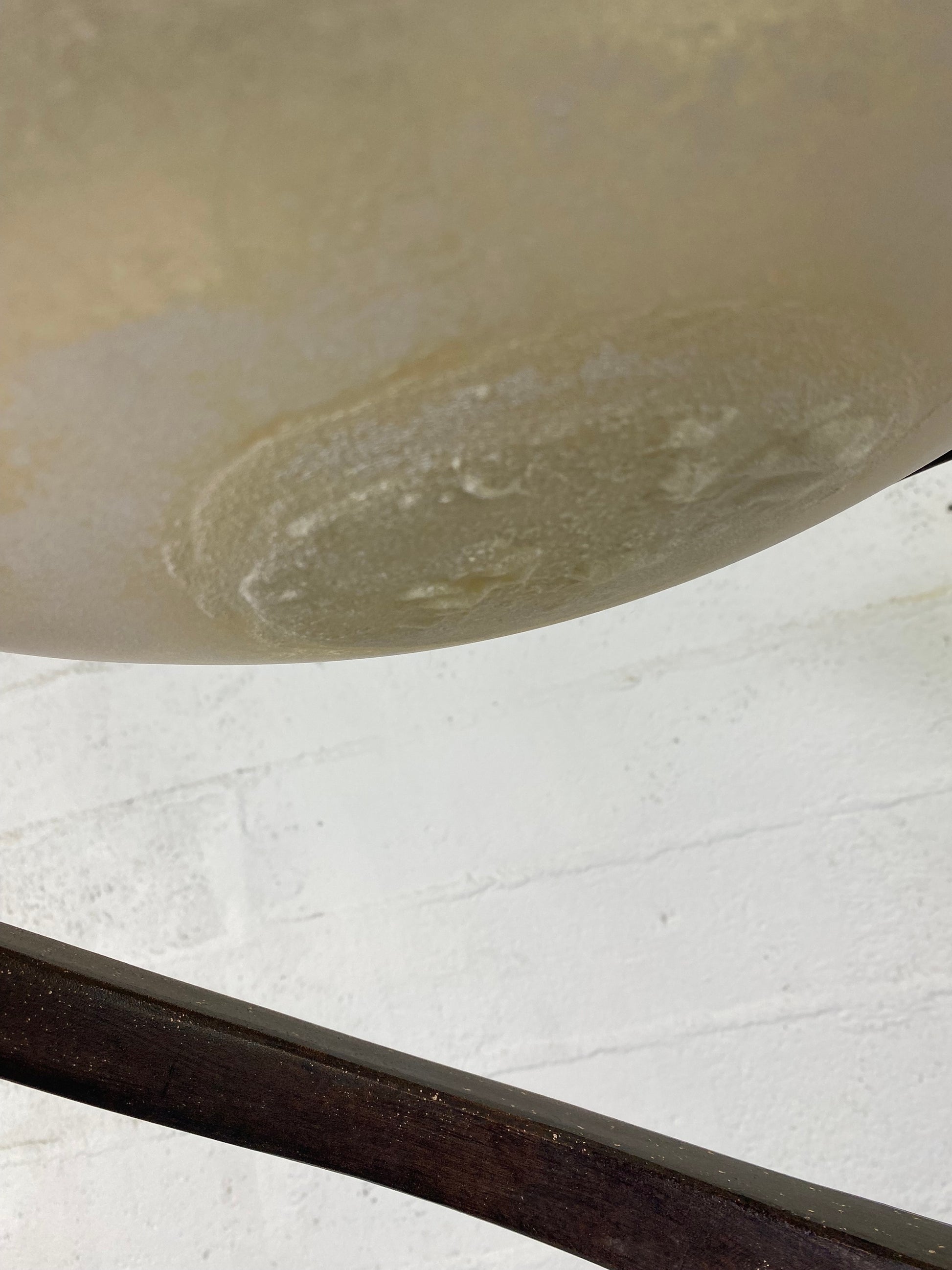 Les finitions en verre de Murano et le pied en métal chromé sont en très bon état, avec des traces d'usure légères, normales pour une pièce vintage de cette époque. Ce lampadaire offre non seulement un éclairage fonctionnel mais aussi une véritable valeur décorative, idéale pour les amateurs de design des années 70 cherchant à améliorer leur espace avec une pièce maîtresse unique.