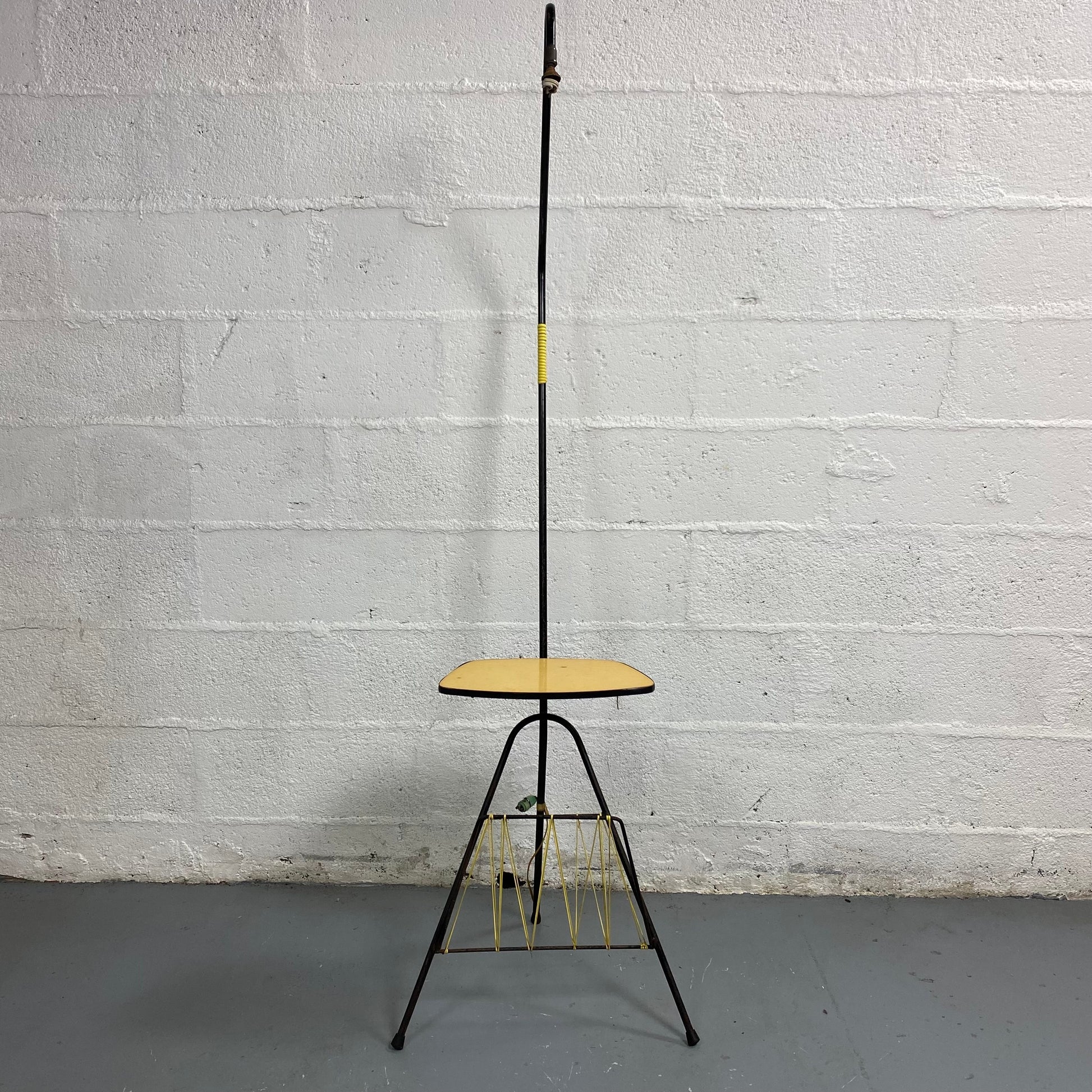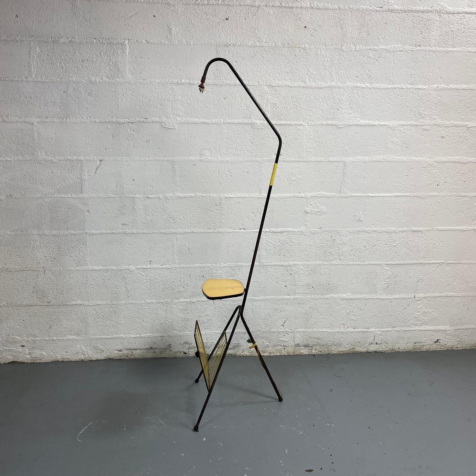 Traces d'usure visibles, il conserve toutefois son charme d'origine. Idéal pour les amateurs de mobilier rétro, il ajoute une valeur décorative unique à votre intérieur. En quête de luminaire vintage authentique années 50, ce lampadaire est parfait pour vous.